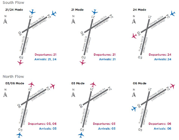 Perth Airport currently has two intersecting runways. The main runway 03/21 is positioned in a north-south alignment and is 3,444 metres long. The cross runway 06/24 is positioned in a northeast-southwest alignment and is 2,163 metres long.